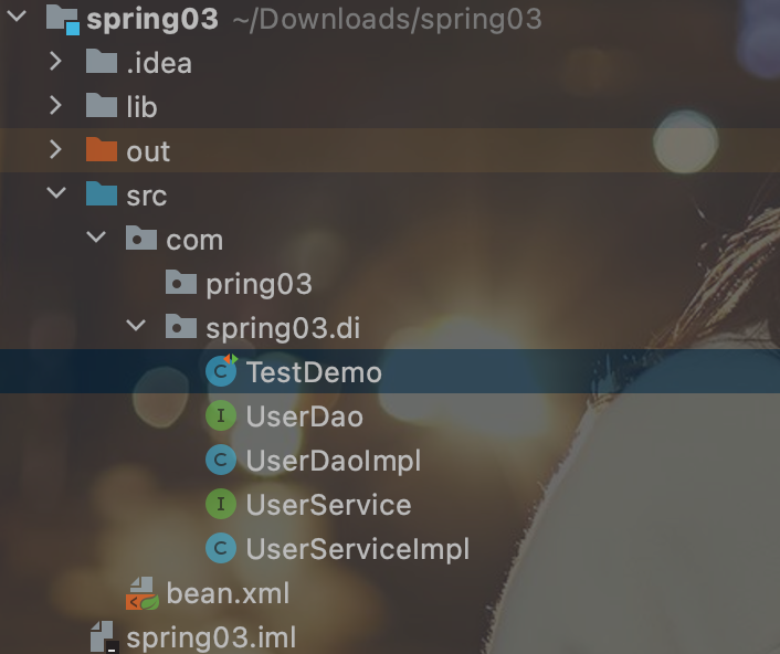 <bean id="UserDao" class="com.spring03.di.UserDaoImpl"></bean>