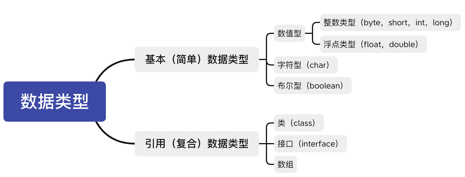 | 基本数据类型 | boolean、byte、char、double、float、int、long、short |