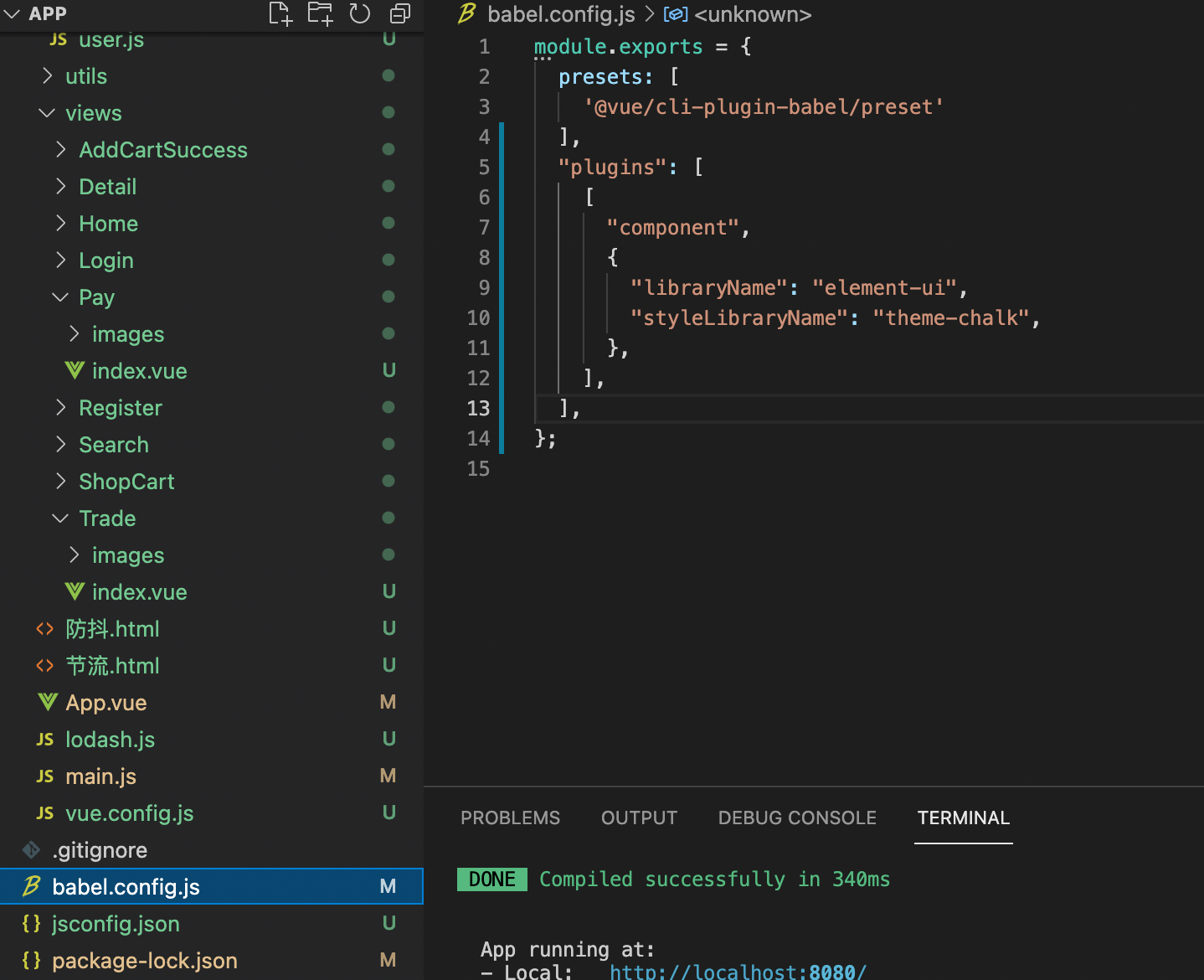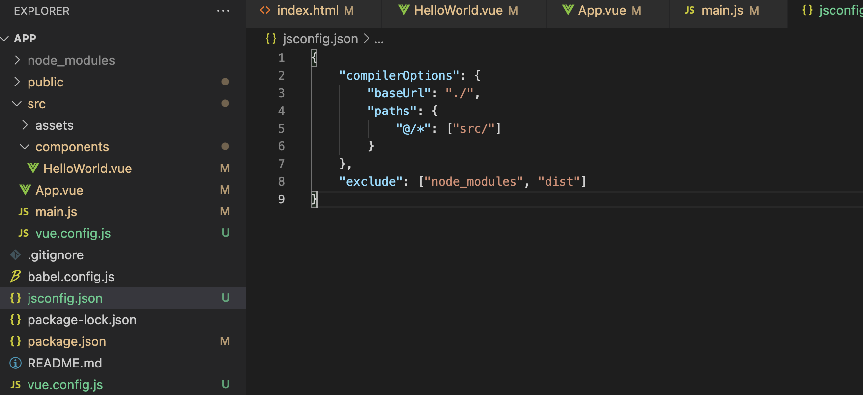 根目录下创建jsconfig.json配置别名@提示「@代表src文件夹,后面文件太多方便查找」