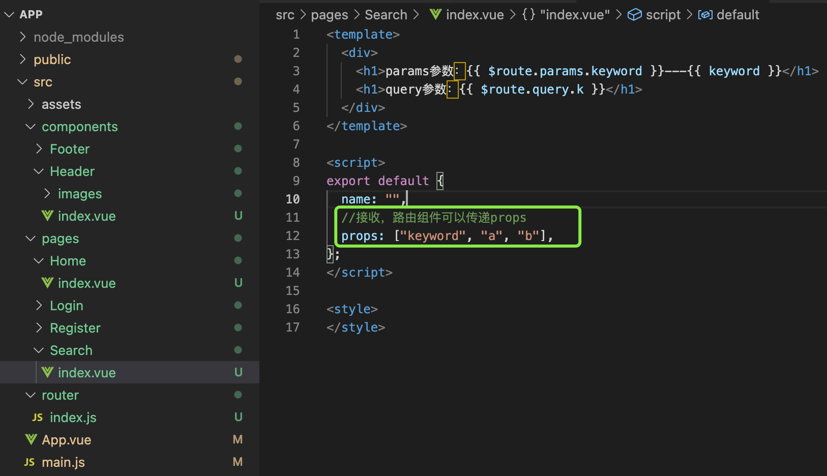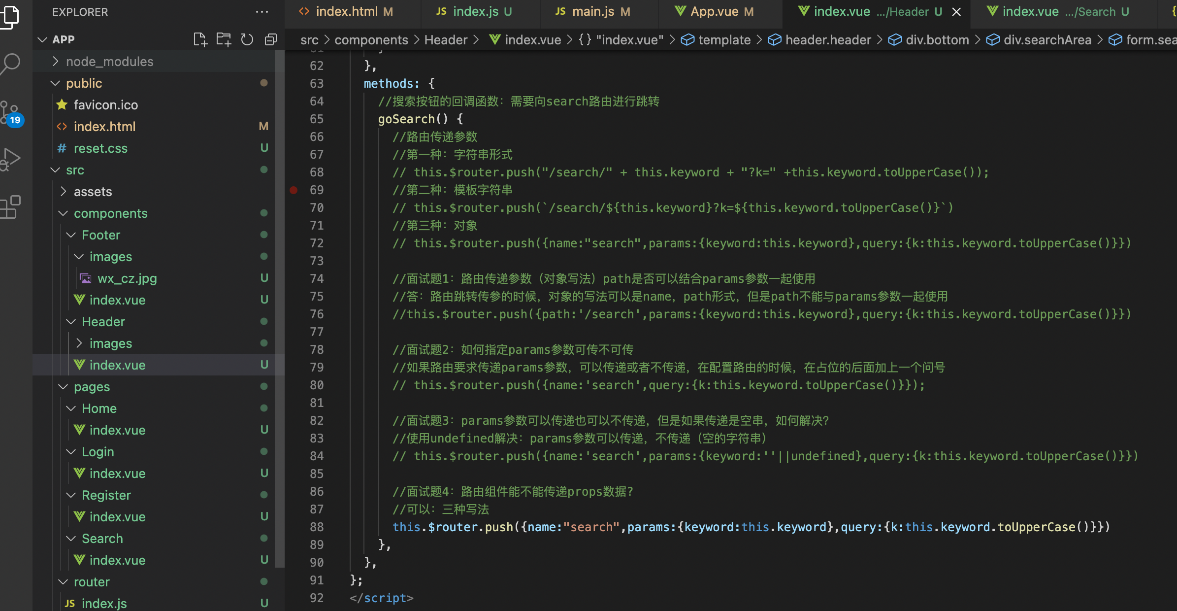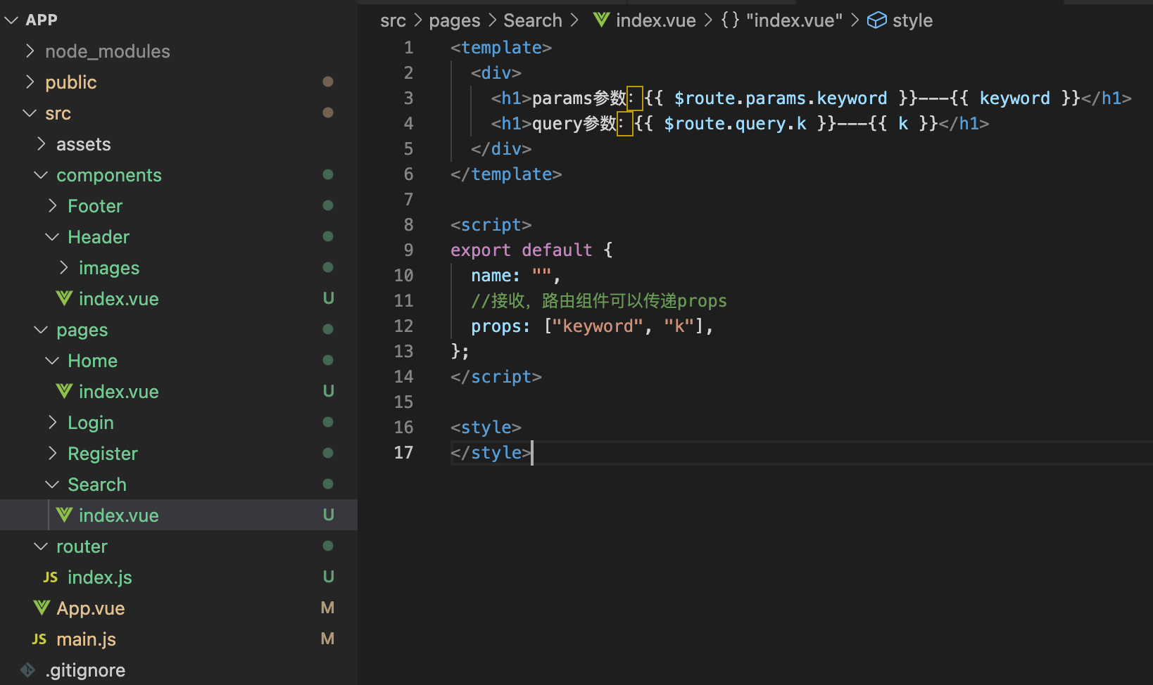 this.$router.push({path:'/search',params:{keyword:this.keyword},query:{k:this.keyword.toUpperCase()}})