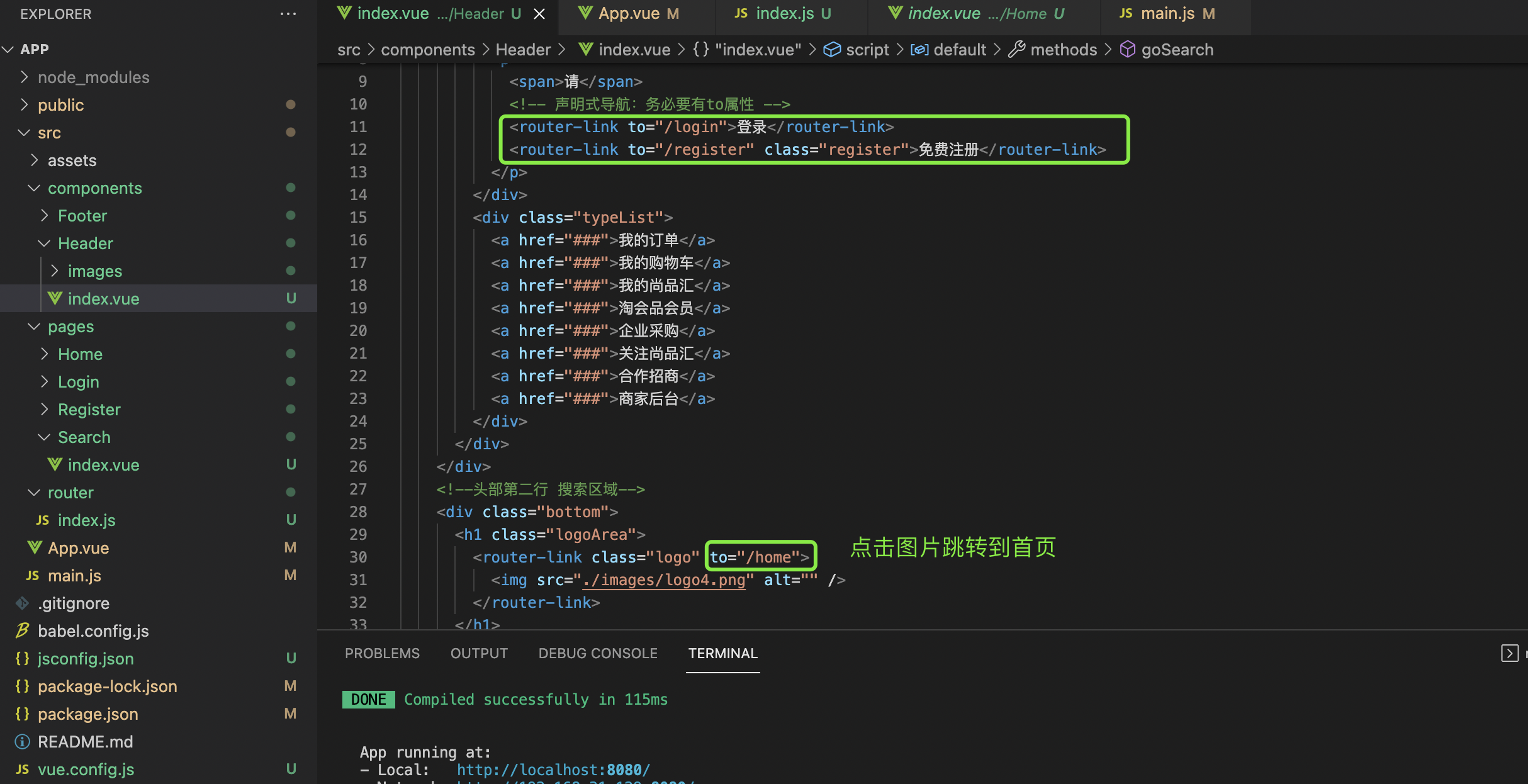 声明式导航:router-link(务必要有to属性),可以进行路由跳转