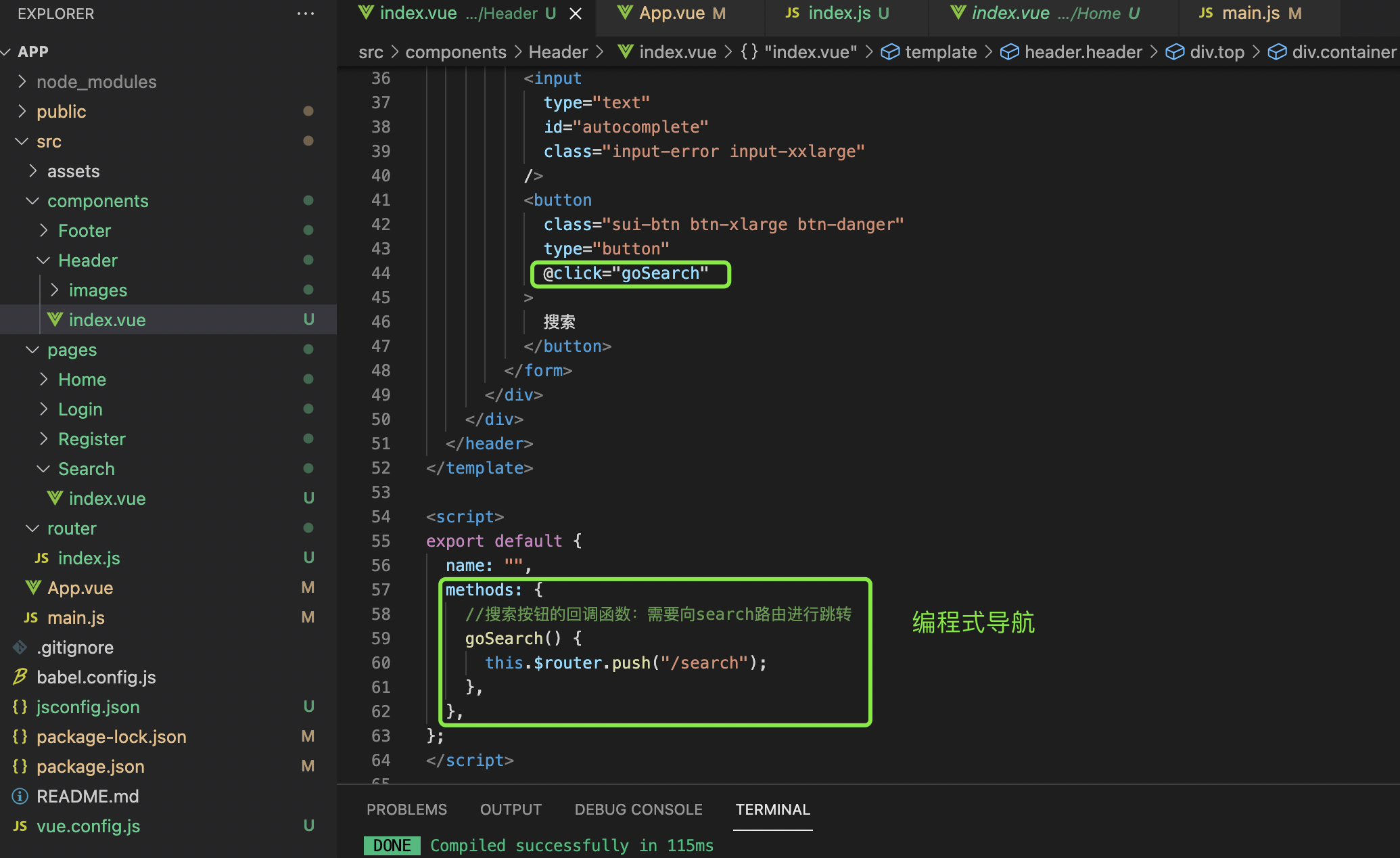 编程式导航:声明式导航能做的,编程式导航也能做;编程式导航除了可以路由跳转,还可以做一些其他业务逻辑(比如点击确认登录的时候还可以收集用户名密码等信息)
