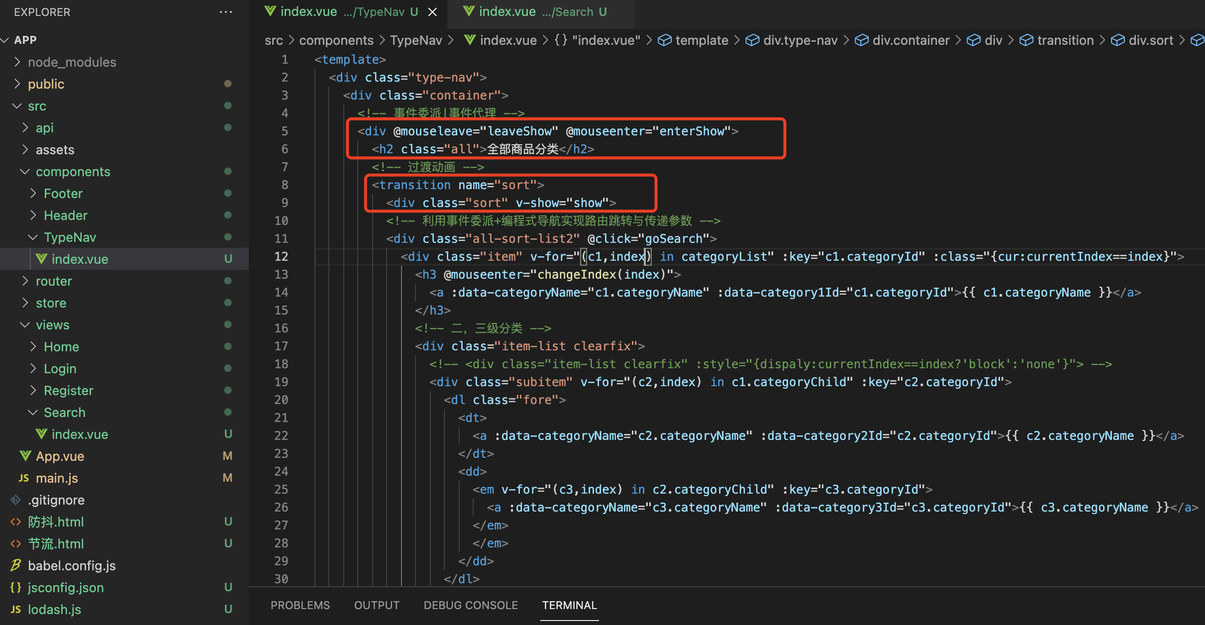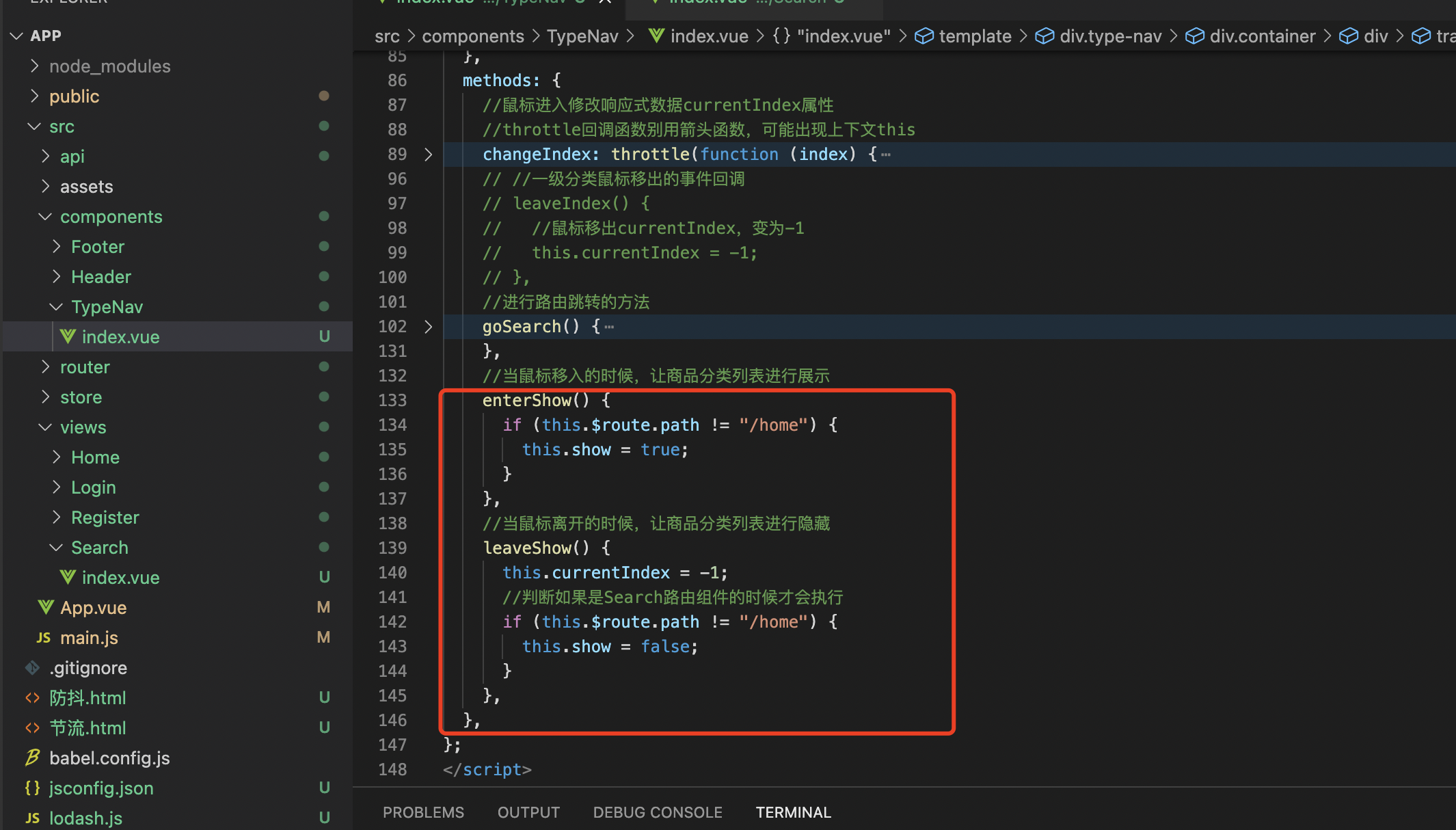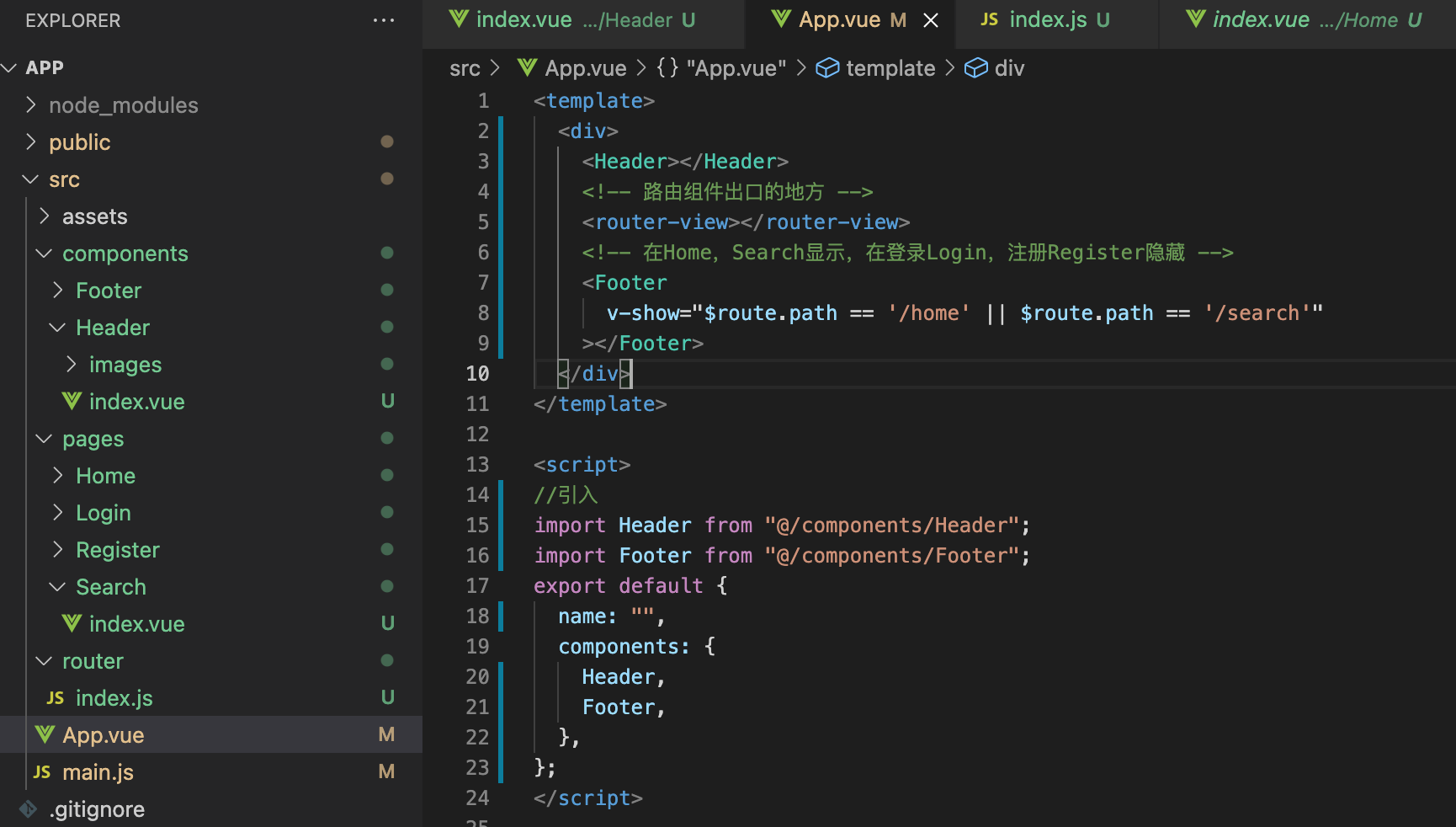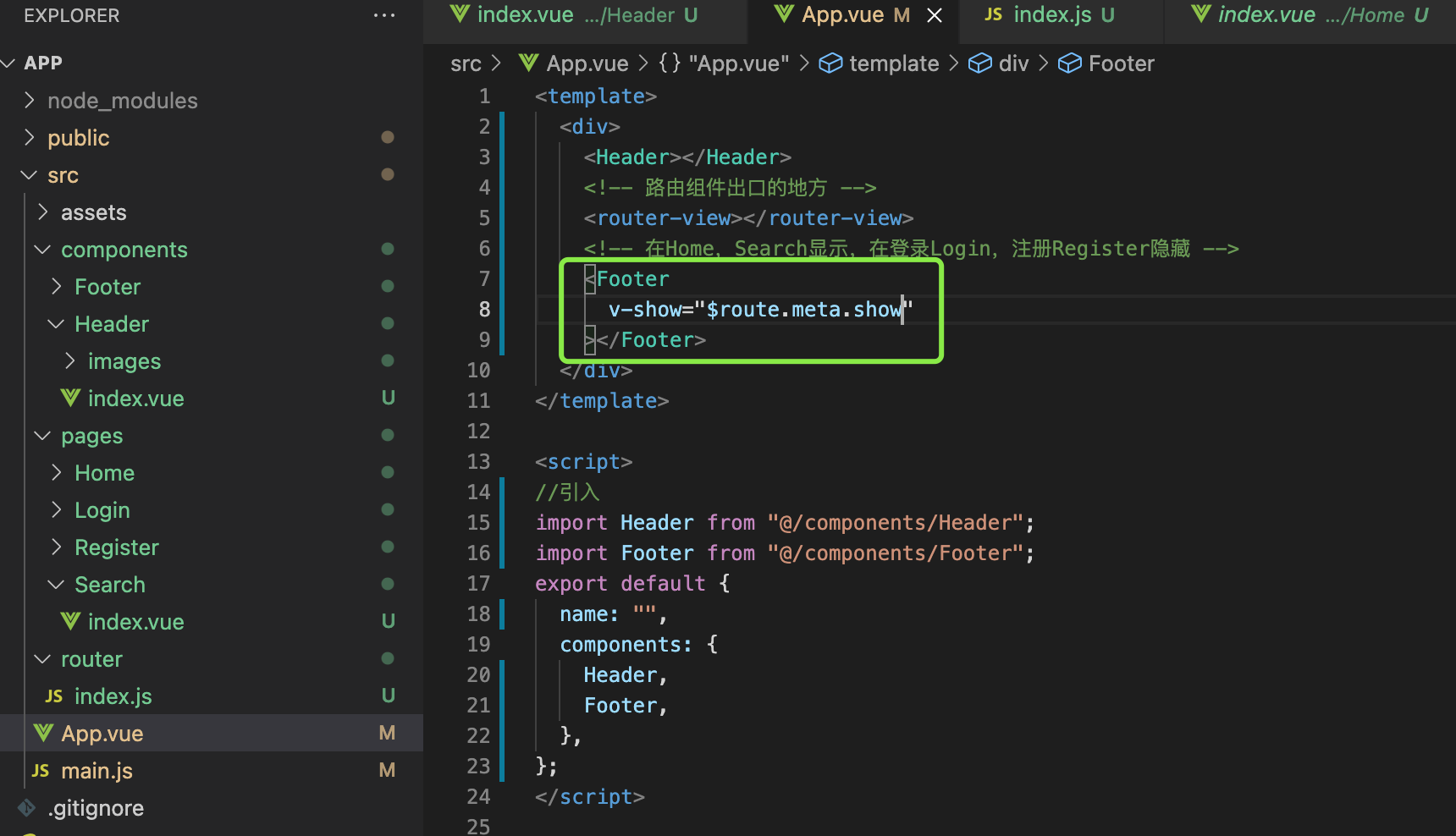 Footer组件:在登录,注册的时候隐藏(v-if | v-show)v-if是操作dom,v-show是操作样式