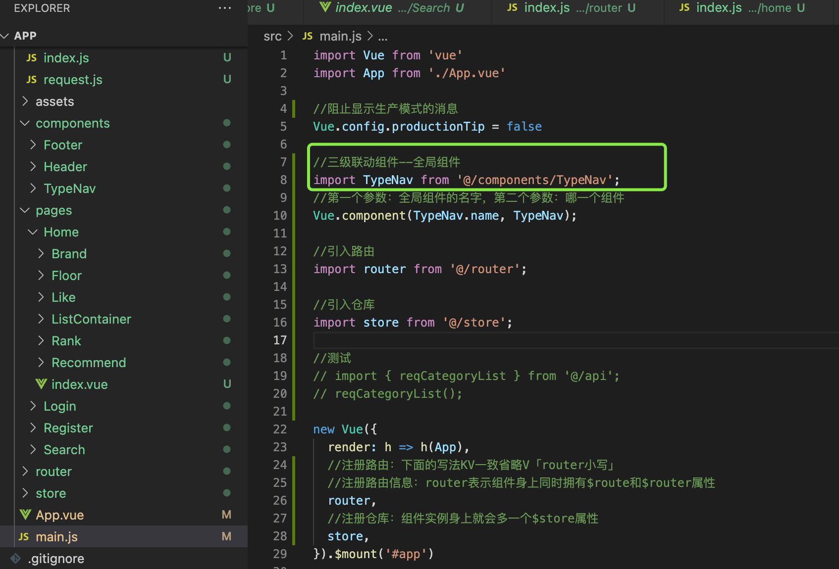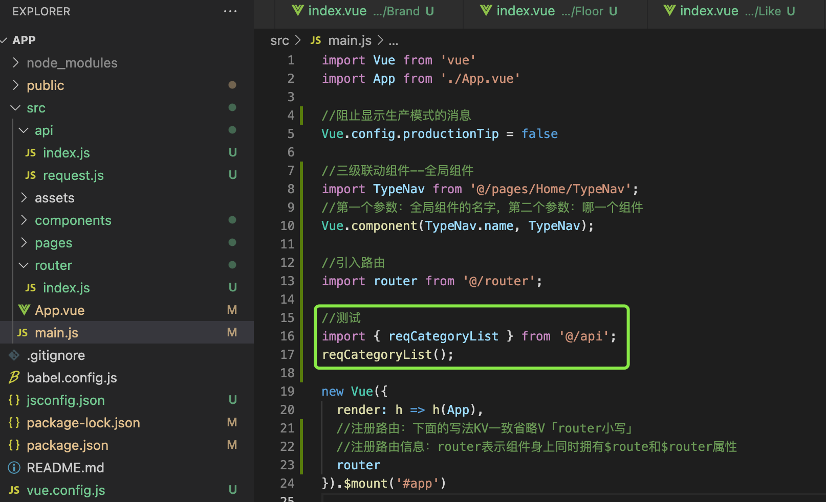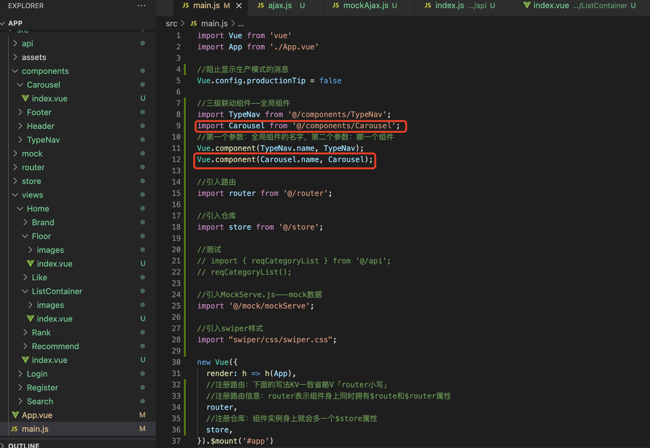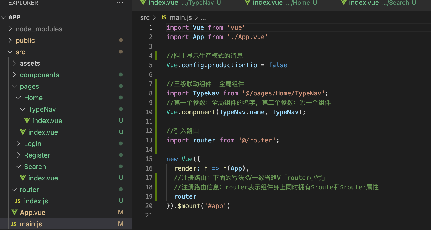 import Vue from 'vue' import App from './App.vue' Vue.config.productionTip = false //引入路由 import router from '@/router'; new Vue({ render: h => h(App), //注册路由:下面的写法KV一致省略V「router小写」 //注册路由信息:router表示组件身上同时拥有$route和$router属性 router }).$mount('#app')
