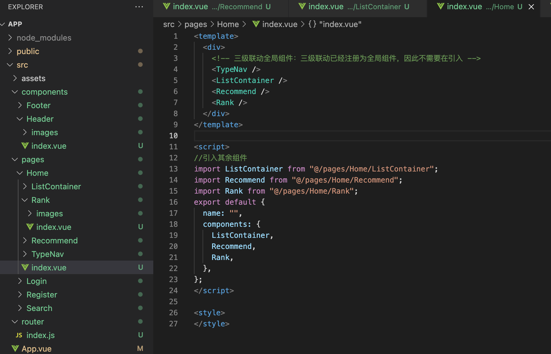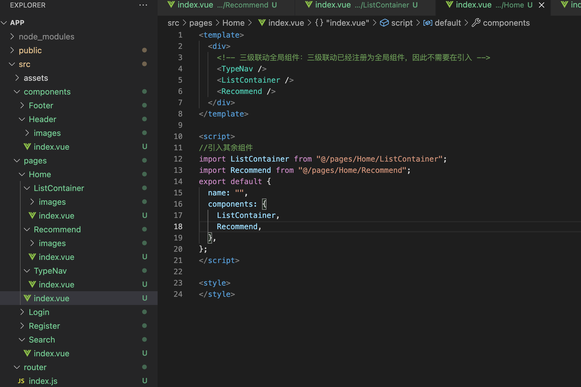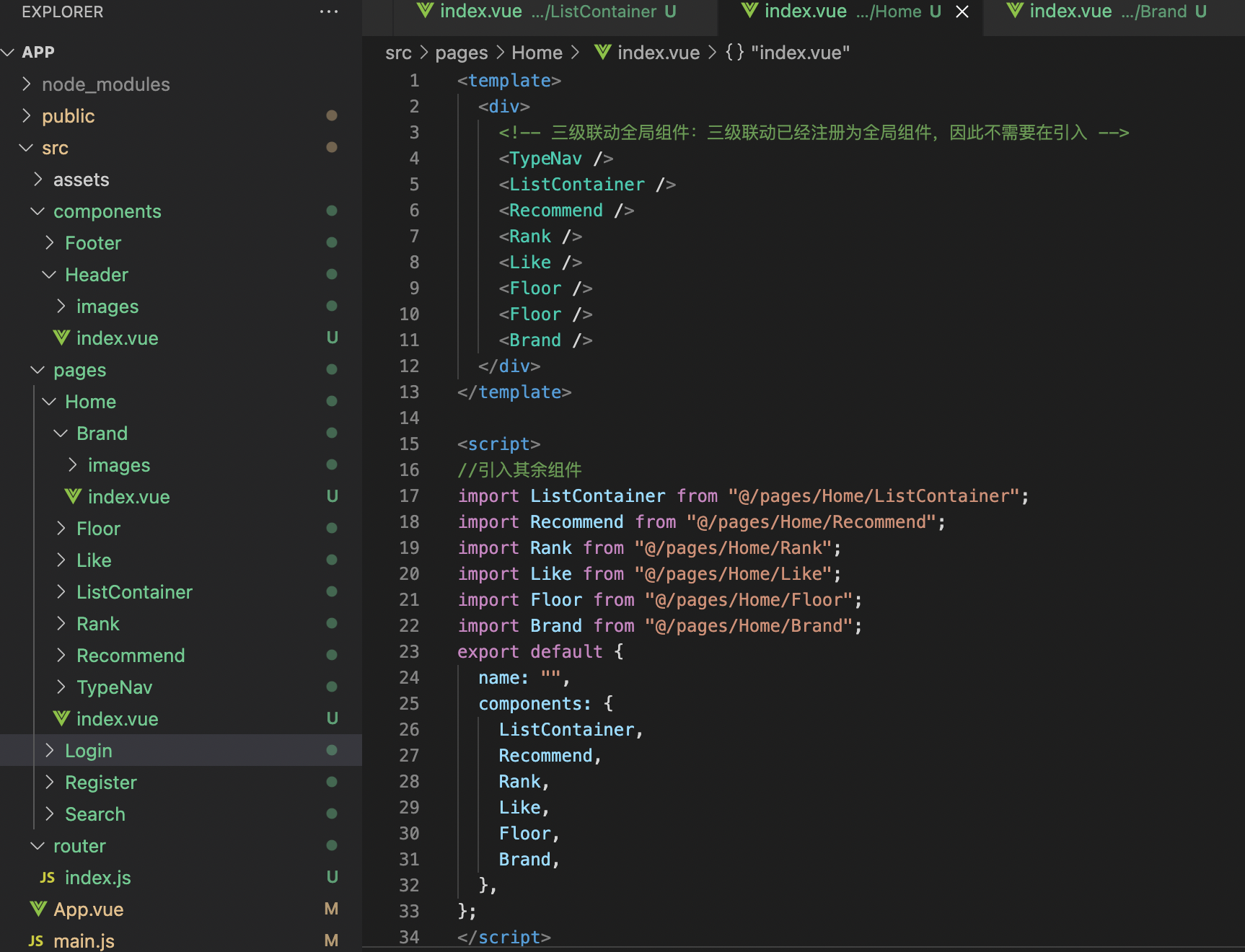 1.路由组件一般放置在pages | views文件夹,非路由组件一般放置components文件夹中