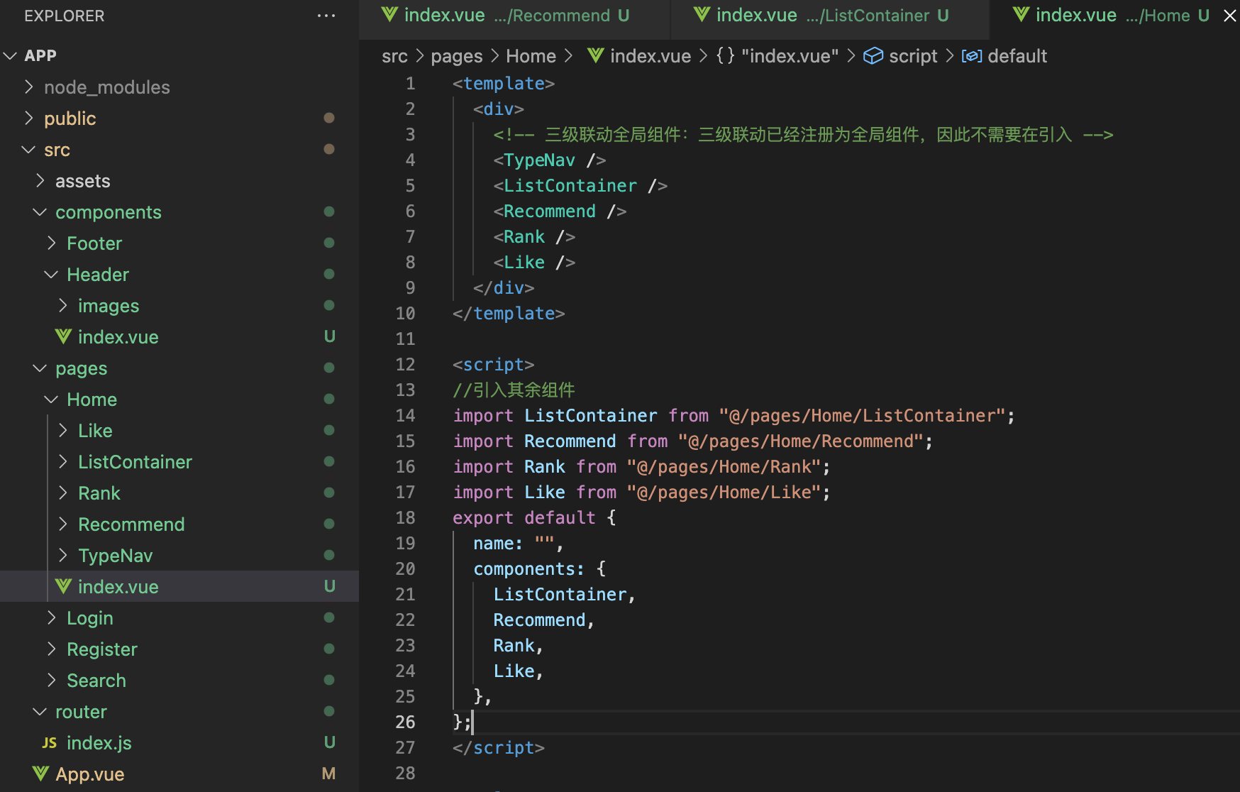 <script> //引入子组件 import myOrder from "./myOrder"; import groupOrder from "./groupOrder"; export default { name: "", components: { myOrder, groupOrder, }, }; </script>