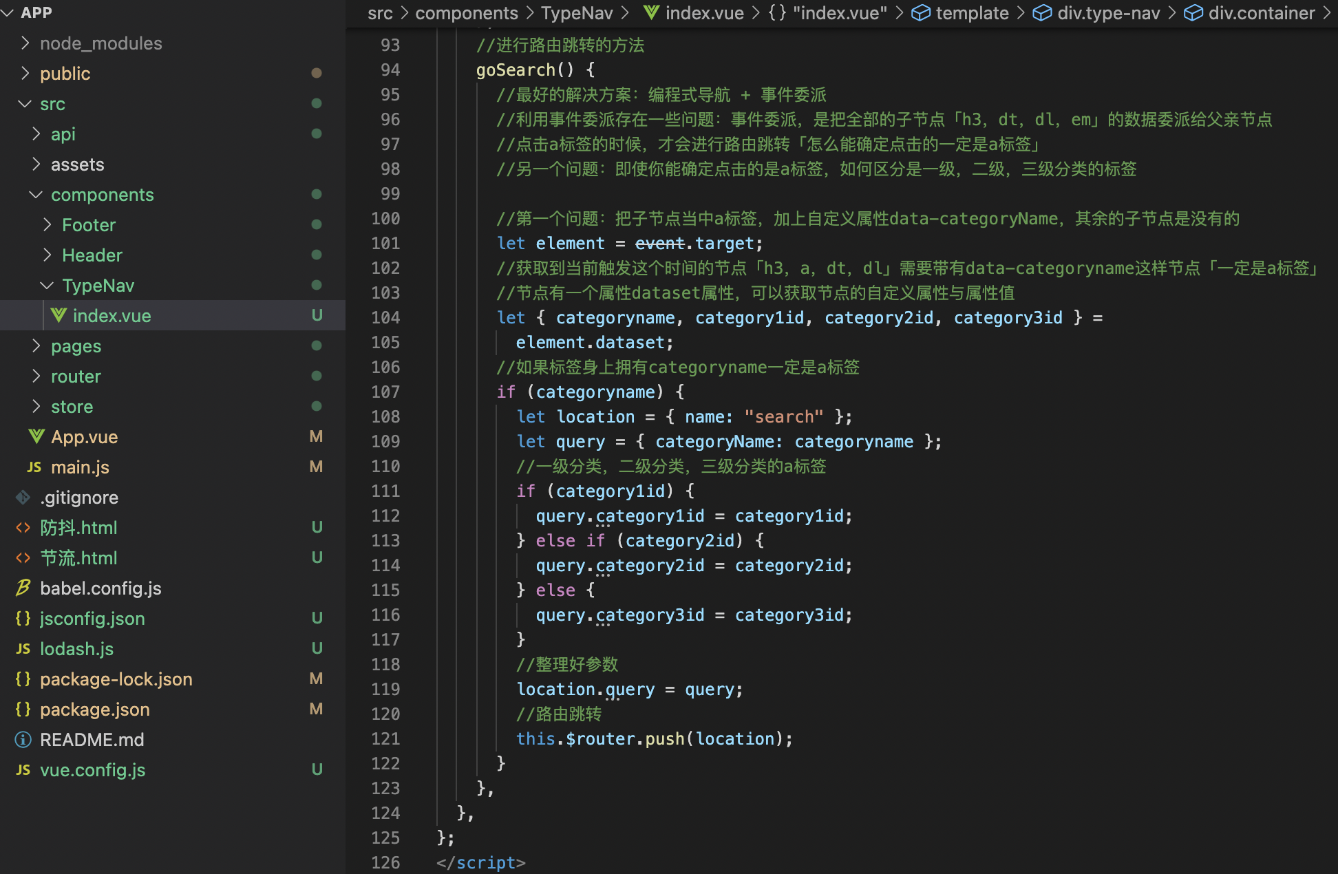 编程式导航:利用的是组件实例的$router.push | replace方法,可以进行路由跳转