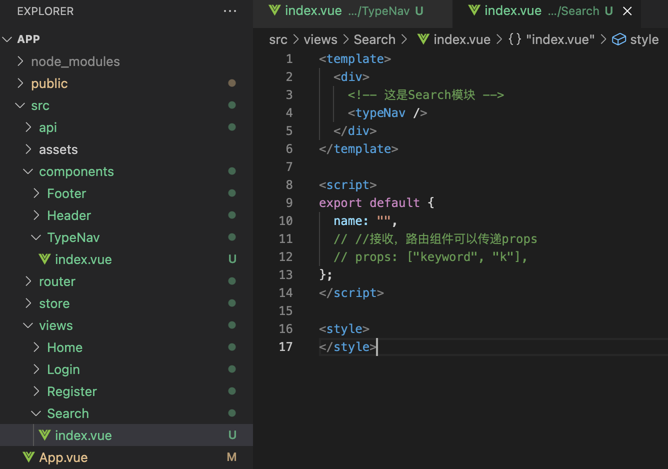 <!-- 在Home,Search显示,在登录Login,注册Register隐藏 -->