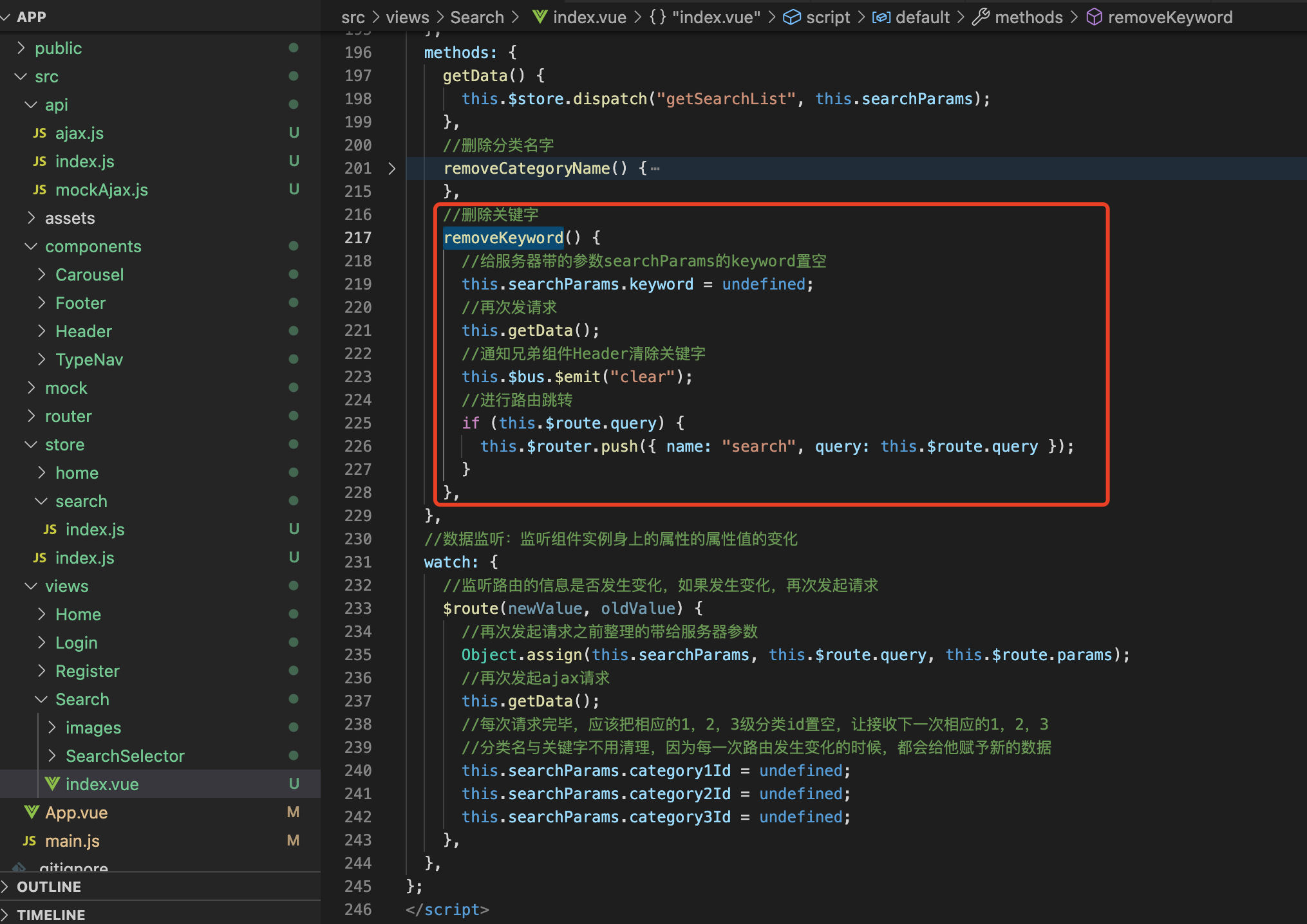 this.$router.push("/search/" + this.keyword+"?k="+this.keyword.toUpperCase());