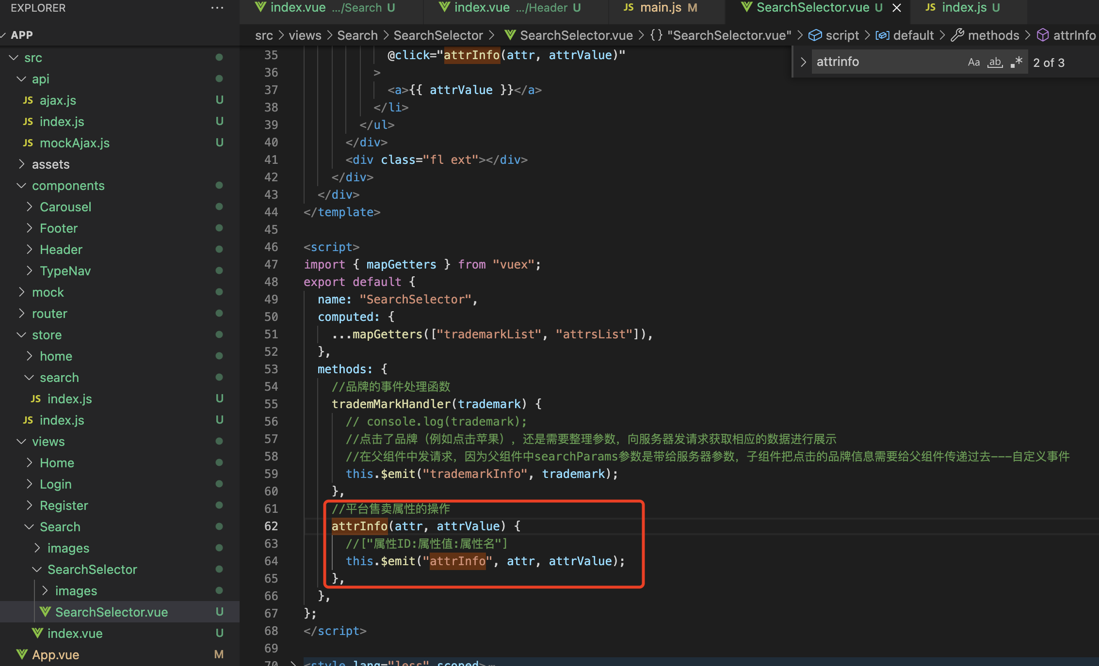 //登陆的回调 methods: { async userLogin() { try { //登陆成功 const { phone, password } = this; phone && password && (await this.$store.dispatch("userLogin", { phone, password })); //登录的路由组件:看路由当中是否包含query参数,有:调到query参数指定路由,没有:调到home let toPath = this.$route.query.redirect || "/home"; this.$router.push(toPath); } catch (error) { alert(error.message); } }, },