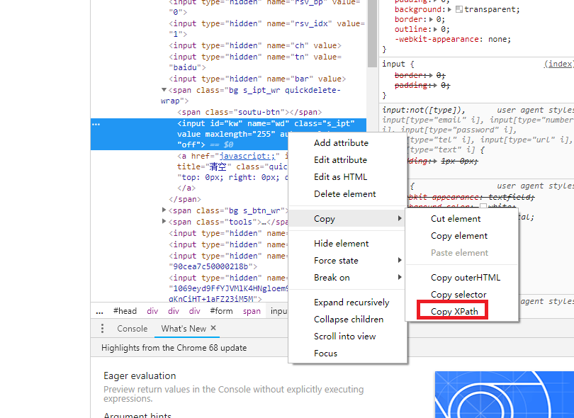 这里我简单提一下xpath的快速获取方式: