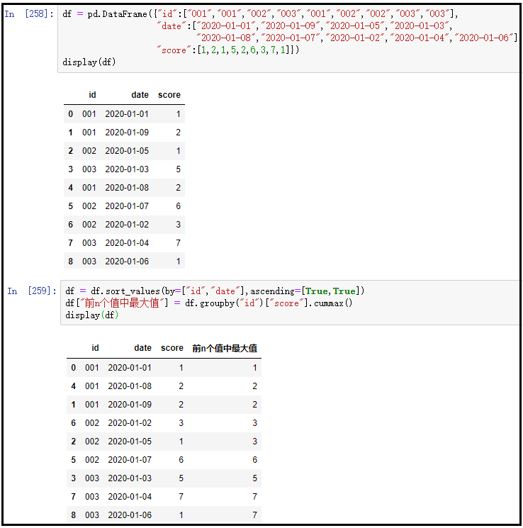 df["前n个值中最大值"] = df.groupby("id")["score"].cummax()