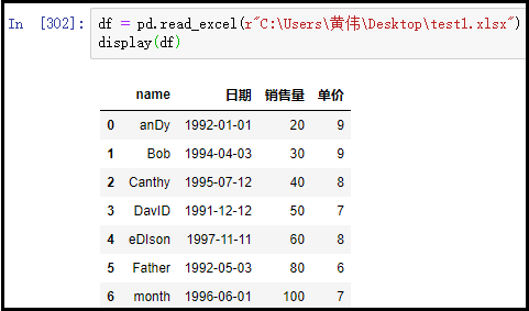 df = pd.read_excel(r"C:\Users\黄伟\Desktop\test1.xlsx") display(df)