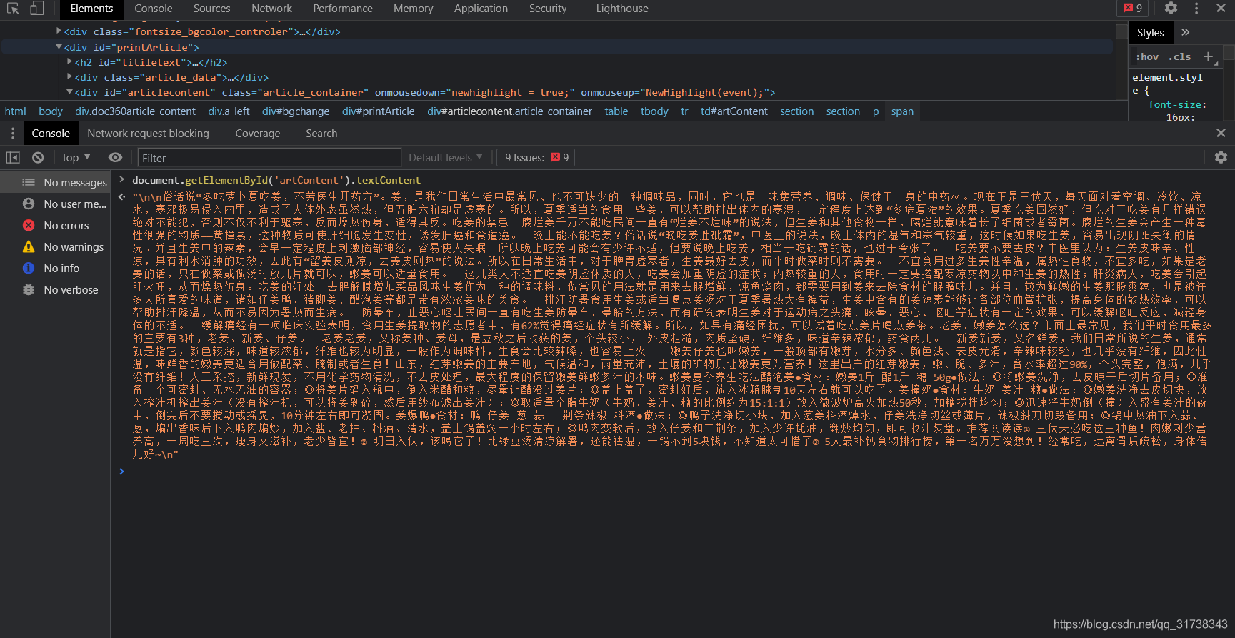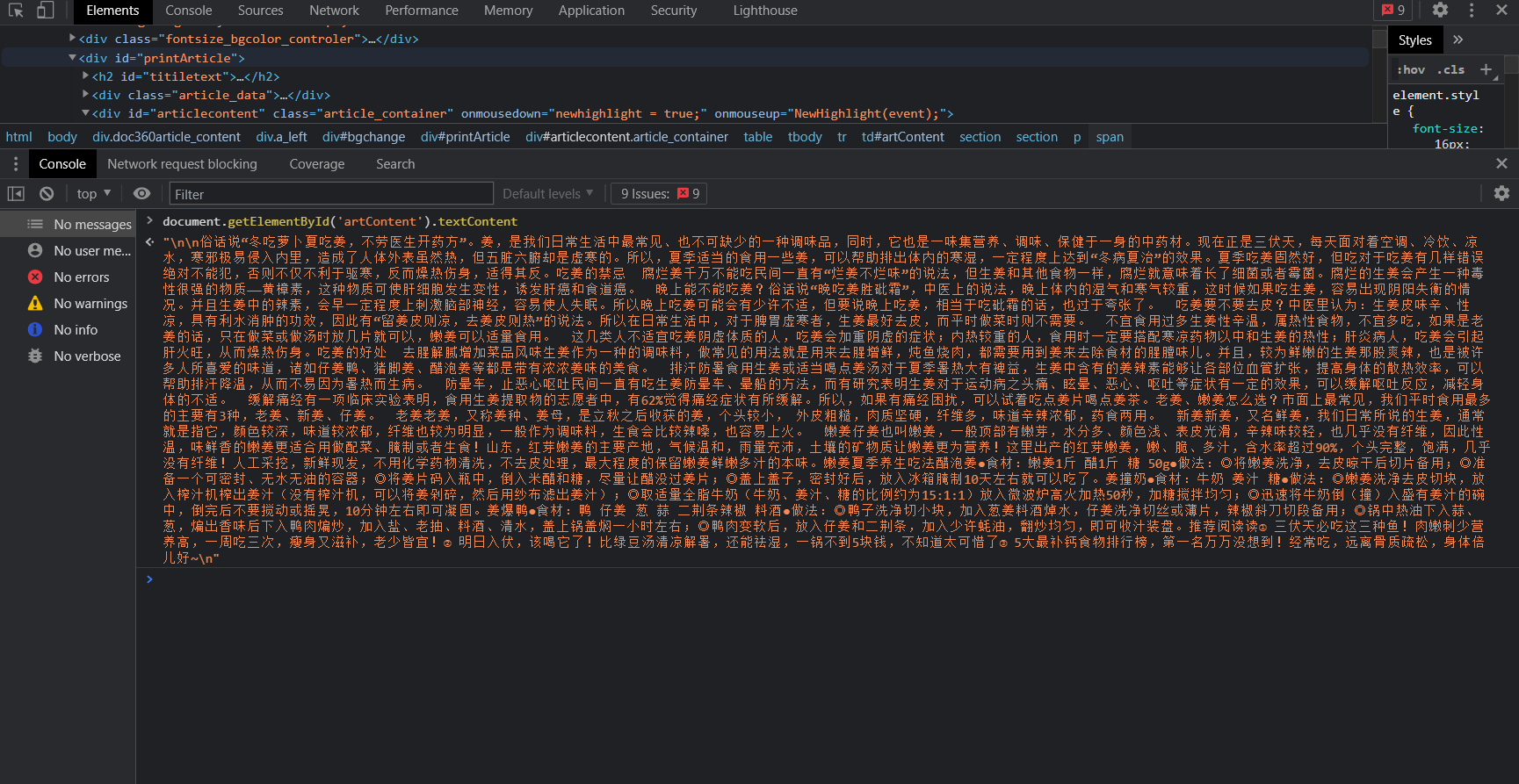 若得到的是class则输入 document.getElementsByClassName('className').textContent