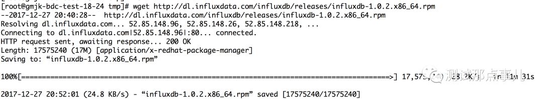 wget http://dl.influxdata.com/influxdb/releases/influxdb-1.0.2.x86_64.rpm下载完成后,如图所示: