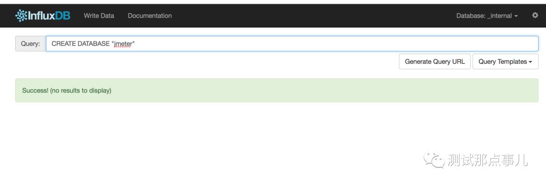 在文本框中输入CREATE DATABASE "jmeter",点击回车,成功如图所示: