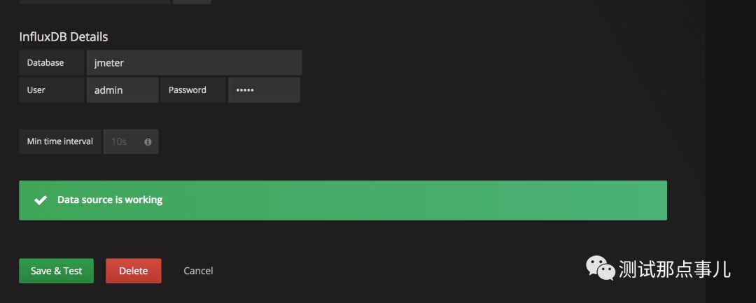 c>输入帐号密码“admin / admin”,点击Test & Save,如下图提示表示成功: