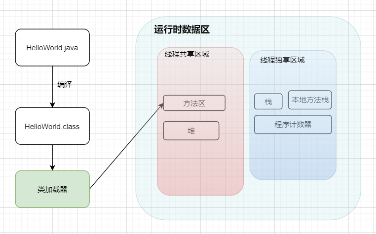 编译好 App.java 后得到 App.class 后,执行 App.class,系统会启动一个 JVM 进程,从 classpath 路径中找到一个名为 App.class 的二进制文件,将 App 的类信息加载到运行时数据区的方法区内,这个过程叫做 App 类的加载