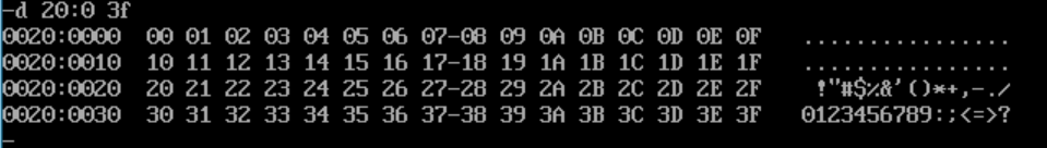 - 汇编、链接无误后,灵活使用debug的t命令、g命令、p命令调试,用d命令查看0:200~0:23F,确认是否将0~63传送至此段内存区域。这部分,要求有截图。