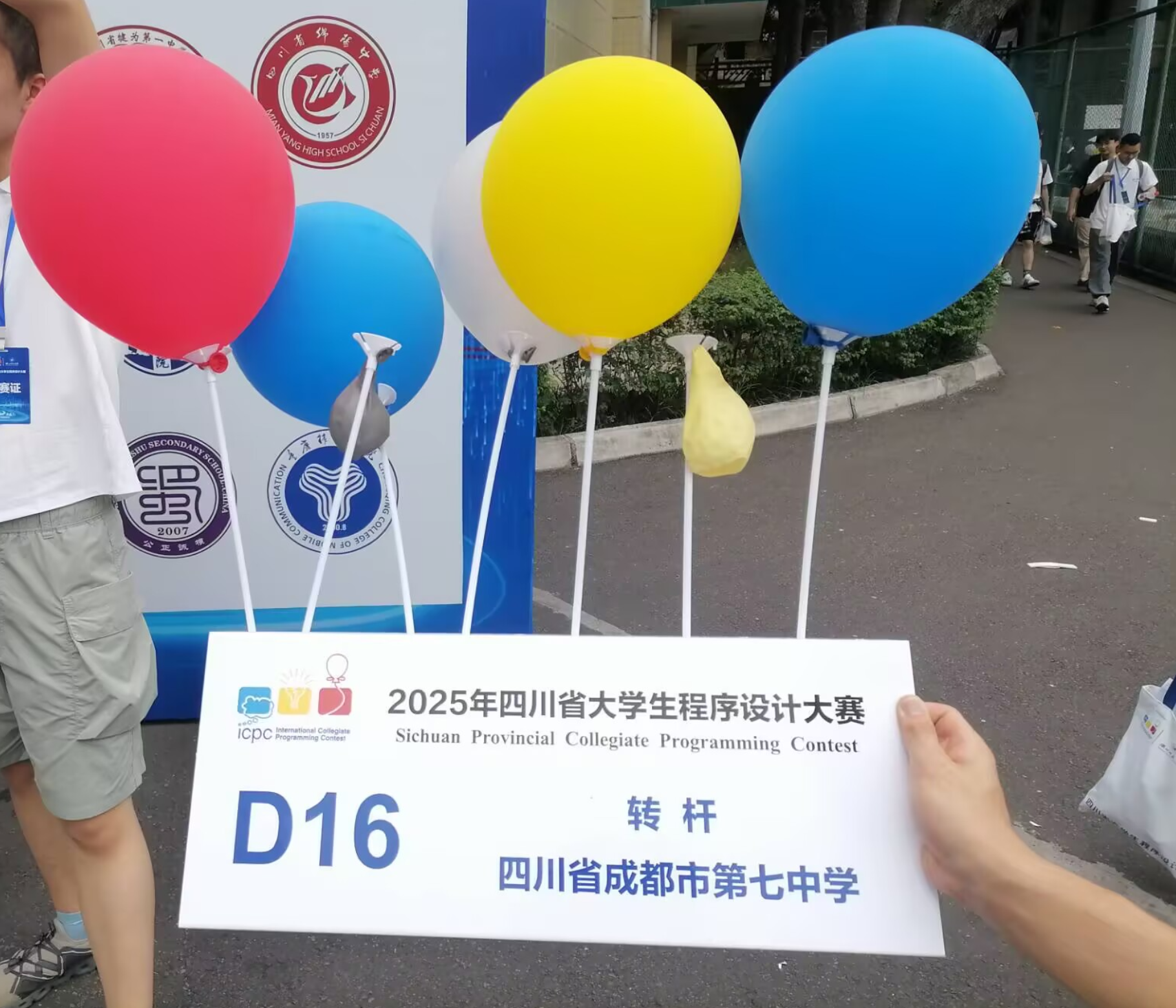 得知有 SCCPC2025 这个东西,然后发现七林的同学都不参加,于是就和七高的同学组了一个队伍,两个队友是 hkx、lyr,并且七高全员参加,一共组了整整 4 个队(算上初中生就是 5 个)。