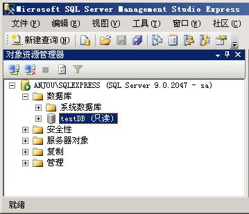 我的操作系统为Windows 2003 Server , 文件系统NTFS, 在SQL Server 2005 Express 上附加(Attach)从另外一台电脑Copy过来的数据库后,数据库为“只读”。如下图: