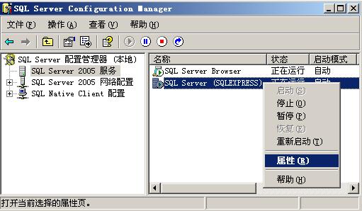 打开 SQL Server Configuration Manager, 打开SQL Server SQLEXPRESS 的属性,如下图: