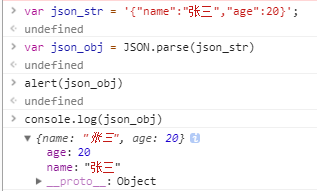 var json_str = ‘{“name”:”张三”,”age”:20}’;
