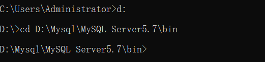 ④ 以管理员身份打开cmd.exe程序,切换到MySQL的bin目录