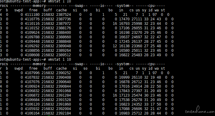 可以观察到,运行队列不是很长,iowait 不高,没有 swap 切换,但是上下文切换和中断似乎有点偏高