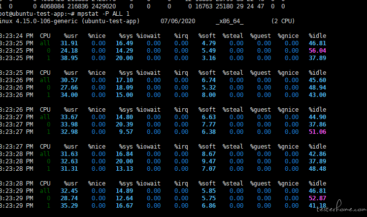 可以很明显的观察到软中断有点偏高,用户空间的 cpu 利用率大约是系统空间的两倍。