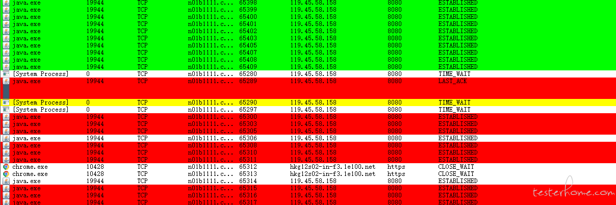 注 2:如果大量的连接是黄色,表示连接状态转换的时间过长,可能是 tcp 缓存有问题