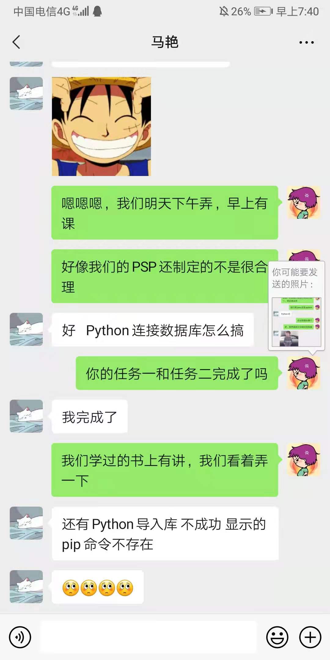 此次博客任务是建立在实验二的基础之上,是对上次任务的完善,通过两人协作互相交流,修改自己的代码,学习对方的编程代码,共同规划任务时间,建立psp表格,但是此次的任务并没有完成的很好,对于数据库的连接并没有实现,明白自己还是有很多的不足,对于知识的运用也没有达到很好的效果。