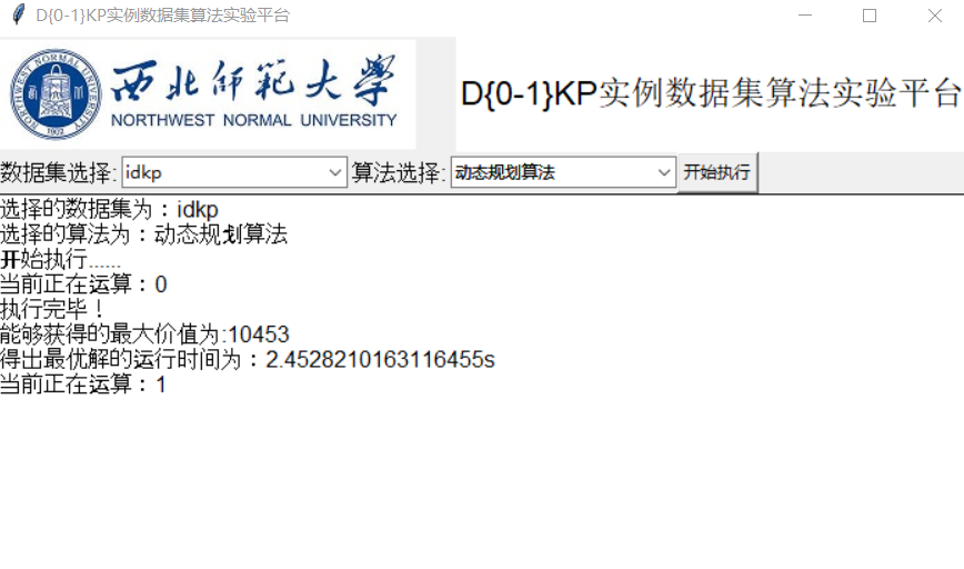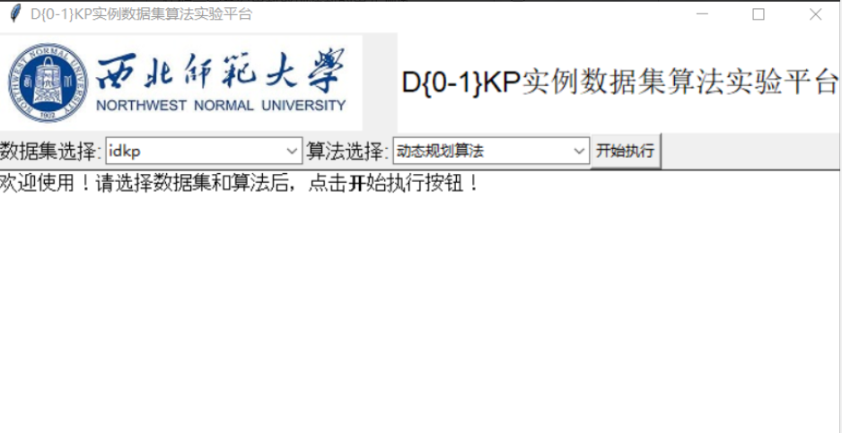 - 平台可动态嵌入任何一个有效的D{0-1}KP 实例求解算法,并保存算法实验日志数据;