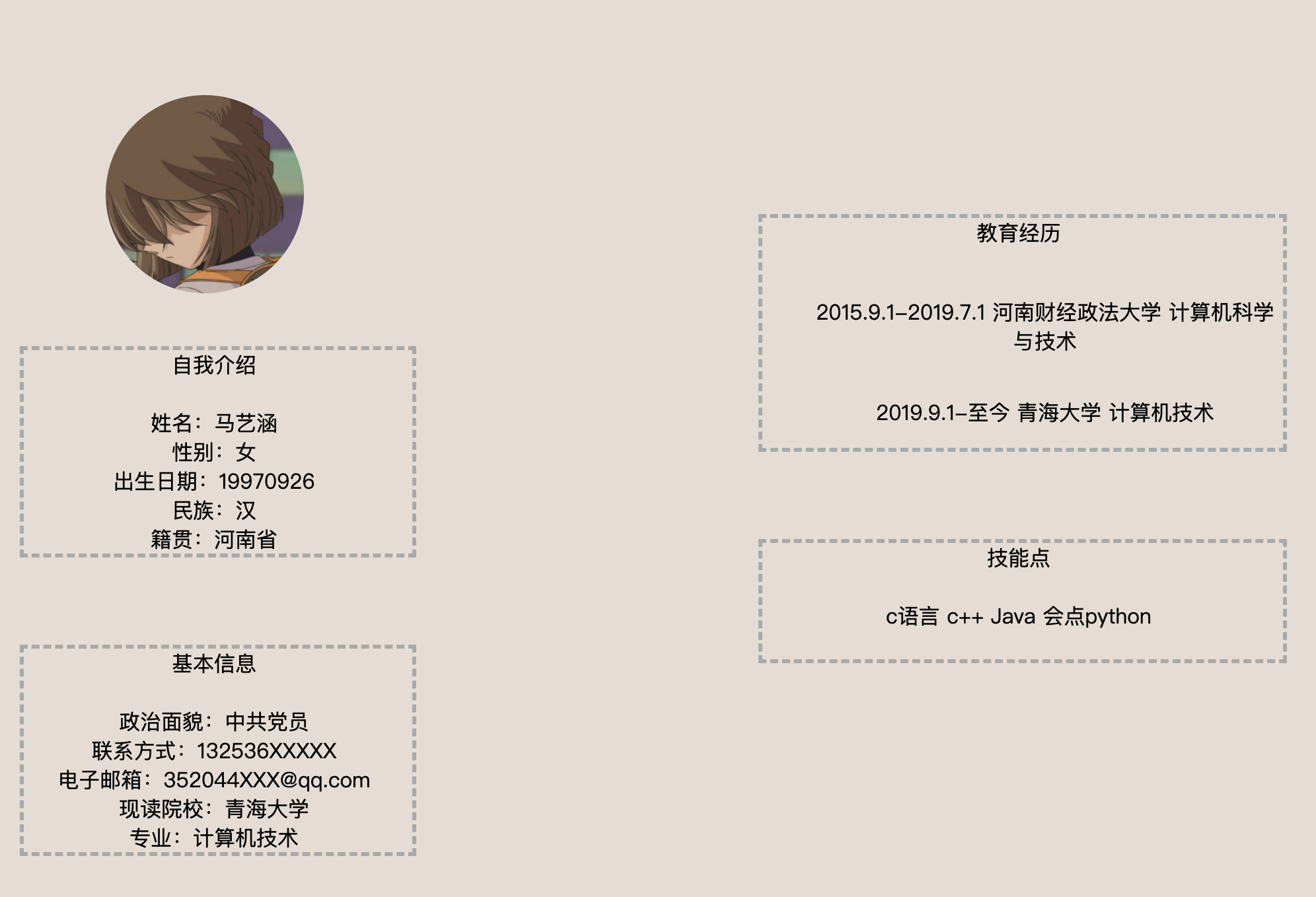 一、html个人简历