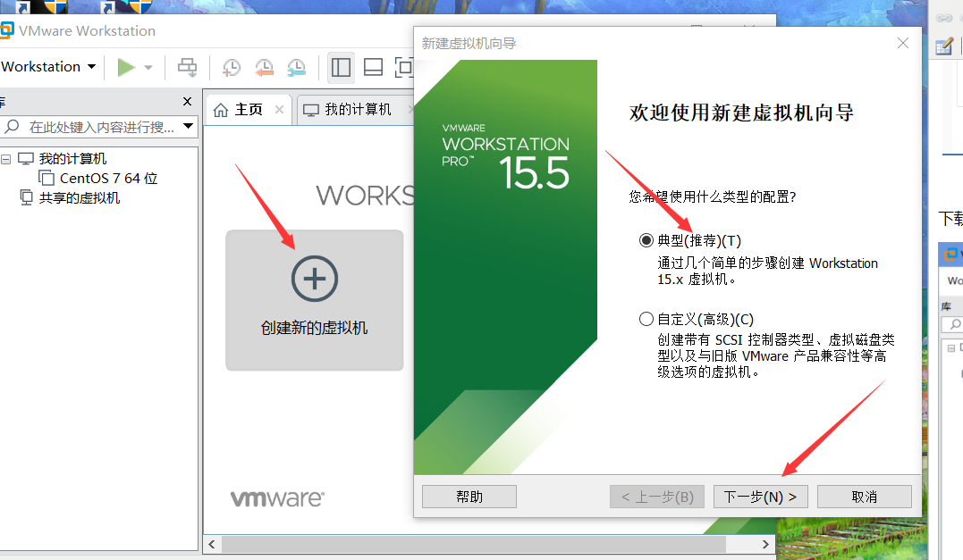 点击创建新的虚拟机随后点击典型推荐,随后点下一步