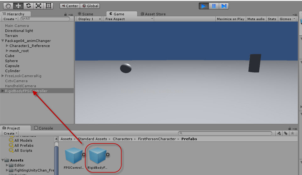 Unity的第一人称视角是和控制和在一起的一个预制件,直接拖到场景中就可以用了。