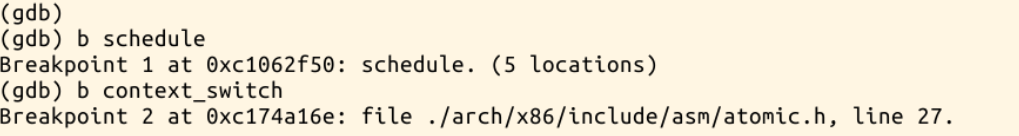 无法对switch_to跟踪调试,因为其为内嵌汇编代码