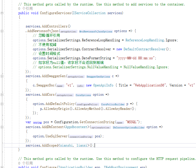 并对starup里面的数据做依赖注入和迁移