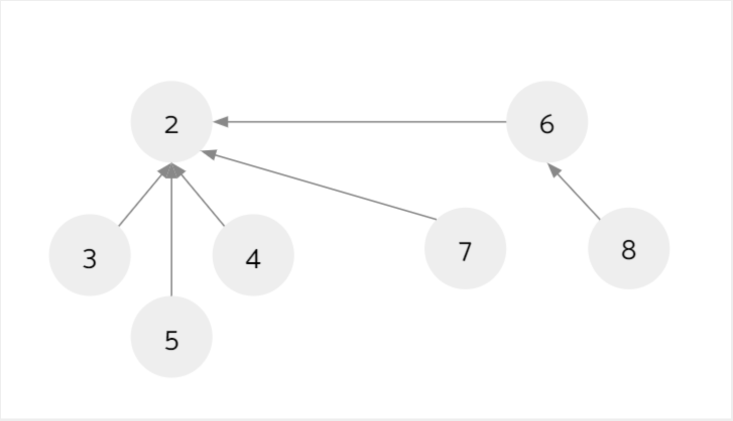 在查找根节点时,将过程中遍历到的节点的父节点都改成根节点,即connect(5, 7)