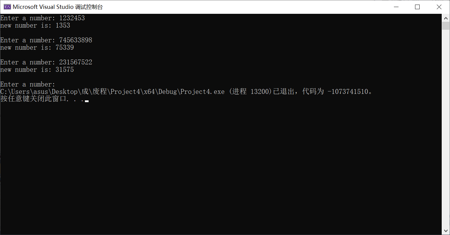 #include <stdio.h> long fun(long s); int main() { long s, t; printf("Enter a number: "); while (scanf("%ld", &s) != EOF) { t = fun(s); printf("new number is: %ld\n\n", t); printf("Enter a number: "); } return 0; } long fun(long s) { long a = 0, b = 0, n = 1, i, c = 1; while (s != 0) { a = s % 10; if (a % 2 != 0) { b = a; s = s / 10; break; } s = s / 10; } while (s != 0) { a = s % 10; if (a % 2 != 0) { for (i = 1;i <= n;i++) { a = a * 10; } b = b + a; n++; } s = s / 10; } return b; }