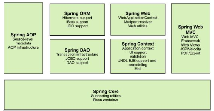 - Spring框架即以interface21框架为基础,经过重新的设计,并不断丰富其内涵,于2004年3月24日,发布了1.0正式版。
