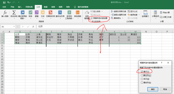 2. 选定内容区域后,点击“根据所选内容创建”。