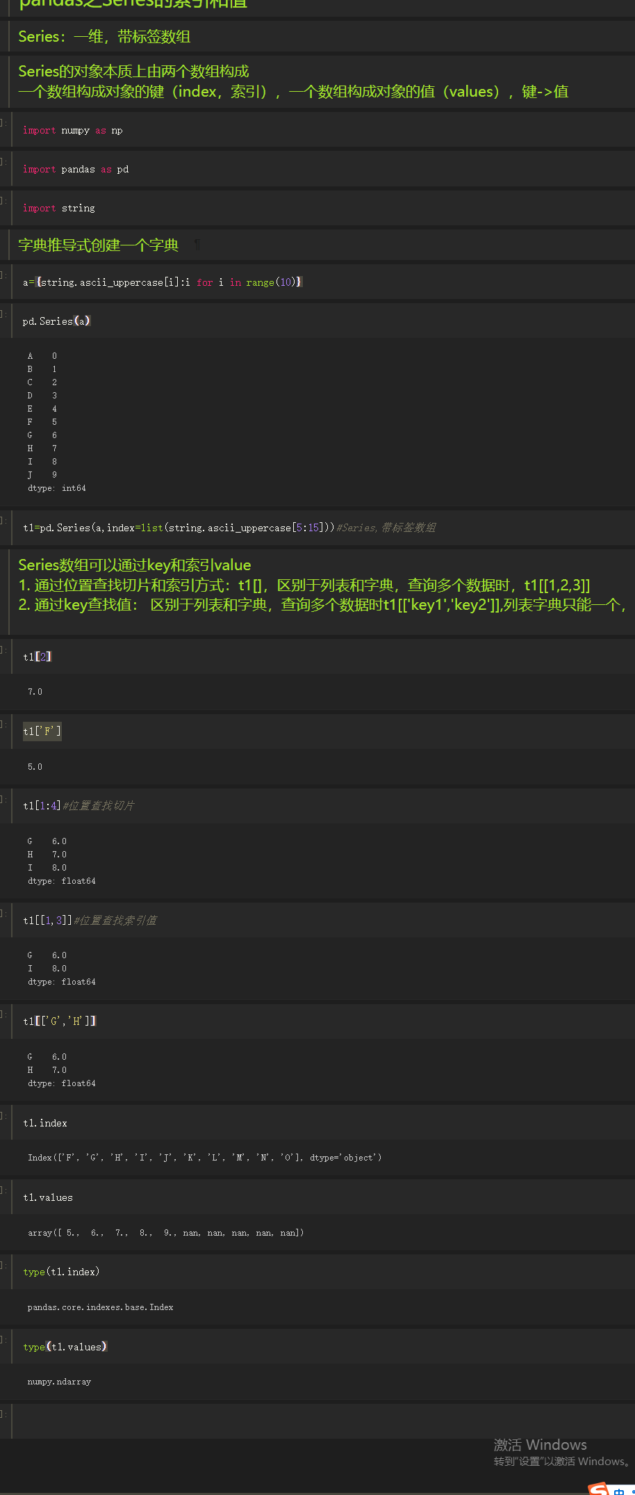 pandas之Series的索引和值