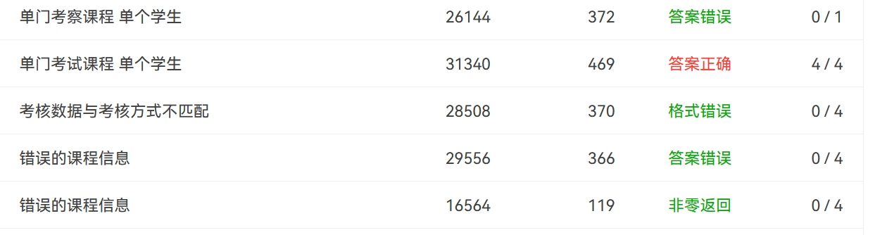 单门课程,单个学生,课程类型与考核类型不匹配。例如: