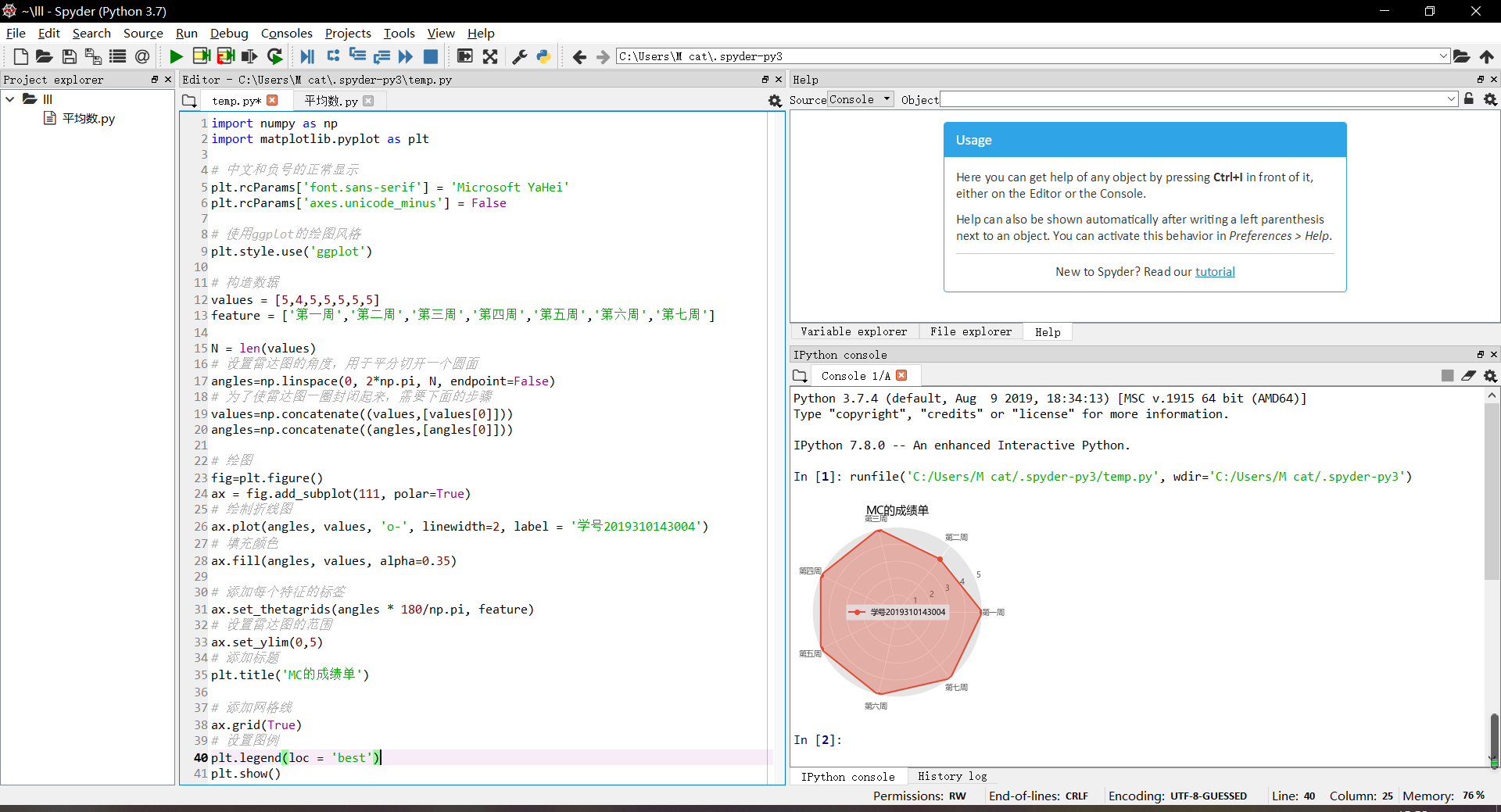 Matplotlib 可能是 Python 2D-绘图领域使用最广泛的套件。它能让使用者很轻松地将数据图形化,并且提供多样化的输出格式,基于Numpy库。可以实现的效果还是特别广.matplotlib模块依赖于numpy模块和tkinter模块,可以绘制多种形式的图形,包括线图、直方图、饼状图、散点图、误差线图等等,图形质量可满足出版要求,是数据可视化的重要工具。