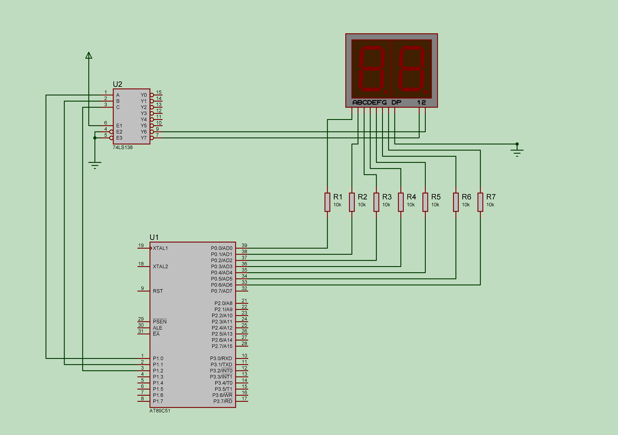 使两位数码管从00开始,间隔1s加1,加到15后回到00状态。(要求:使用定时器1定时,定时50ms中断一次。)