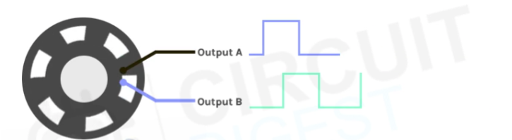 旋转编码器通常由一个旋转轴以及被称为 “A” 通道和 “B” 通道的两部分组成。当你转动旋钮时,这些通道(在连接到公共接地端时)会产生一系列电信号,编码器能够识别这些信号。编码器利用这些信号来追踪旋钮的位置和转动情况。
