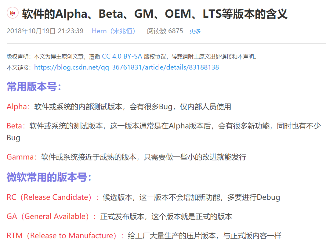 软件的Alpha、Beta、GM、OEM、LTS等版本的含义