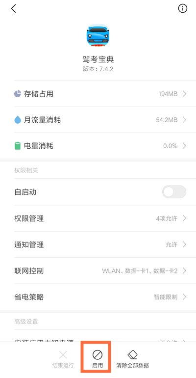 最后去设置里面的应用管理查看,找到了桌面上不见的应用,显示已被禁用,原来是因为这个原因。