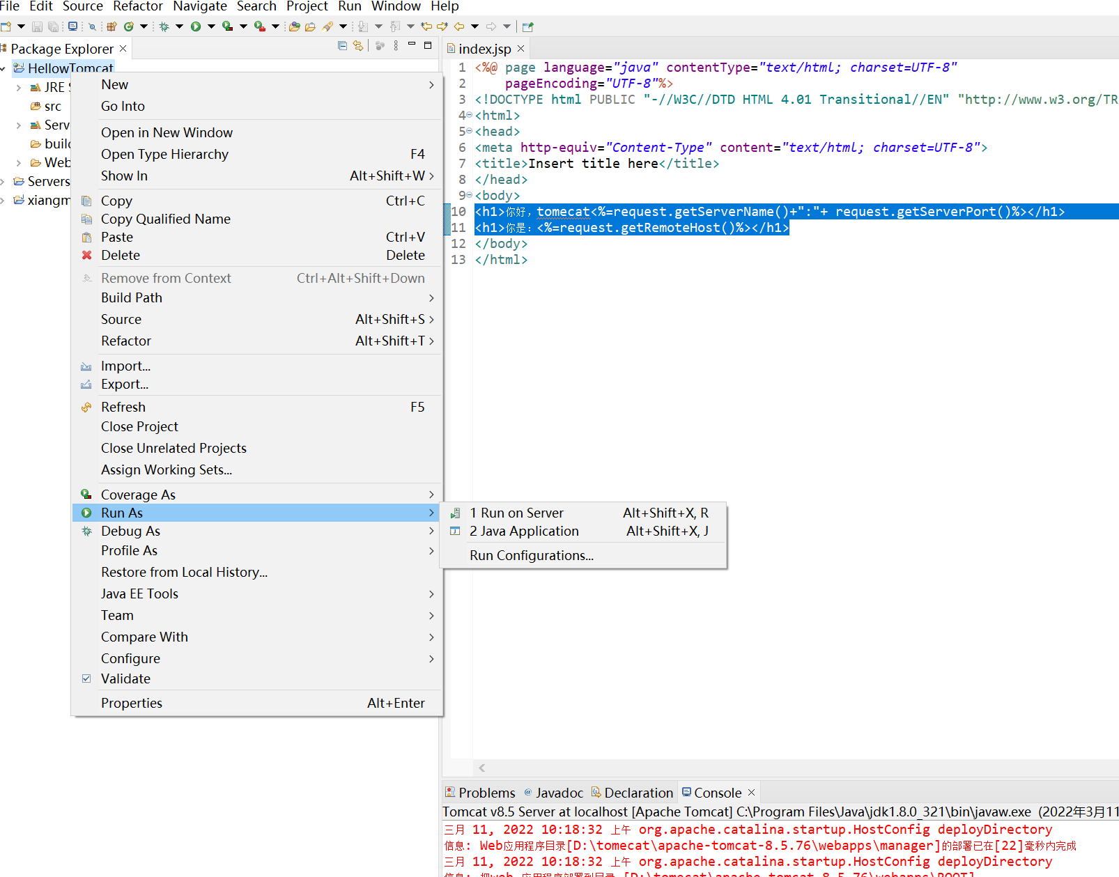 <h1>你好,tomecat<%=request.getServerName()+":"+ request.getServerPort()%></h1>